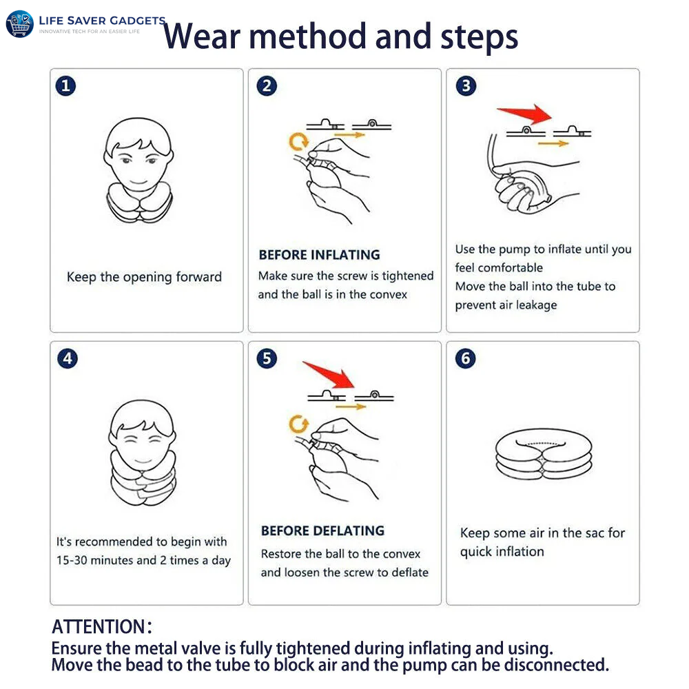 - 【Easy to Use and Carry】 - The inflatable neck pillow is light and exquisite, and easy to carry, whether you are working, or having a lunch break. Ideal for those with neck pain, neck sprains, neck strain, post-operative rehabilitation, and neck injuries. If there is any quality problem with our cervical traction device, please feel free to contact us, we will solve the problem for you within 12 hours.