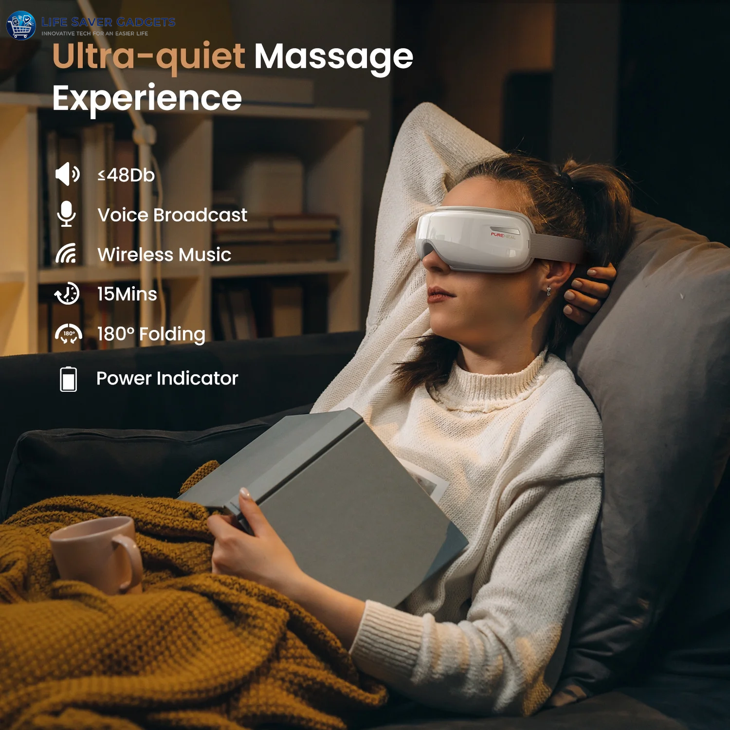 Low- noise eye massager reducing your migraine and improving sleep quality. Heated Eye massager machine also can effectively help you be refreshed after long-day work or study.