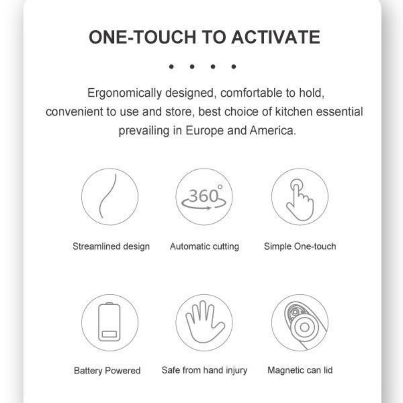 ntroducing the Auto Electric Can Opener, the ultimate kitchen gadget that simplifies can opening with just one press!
