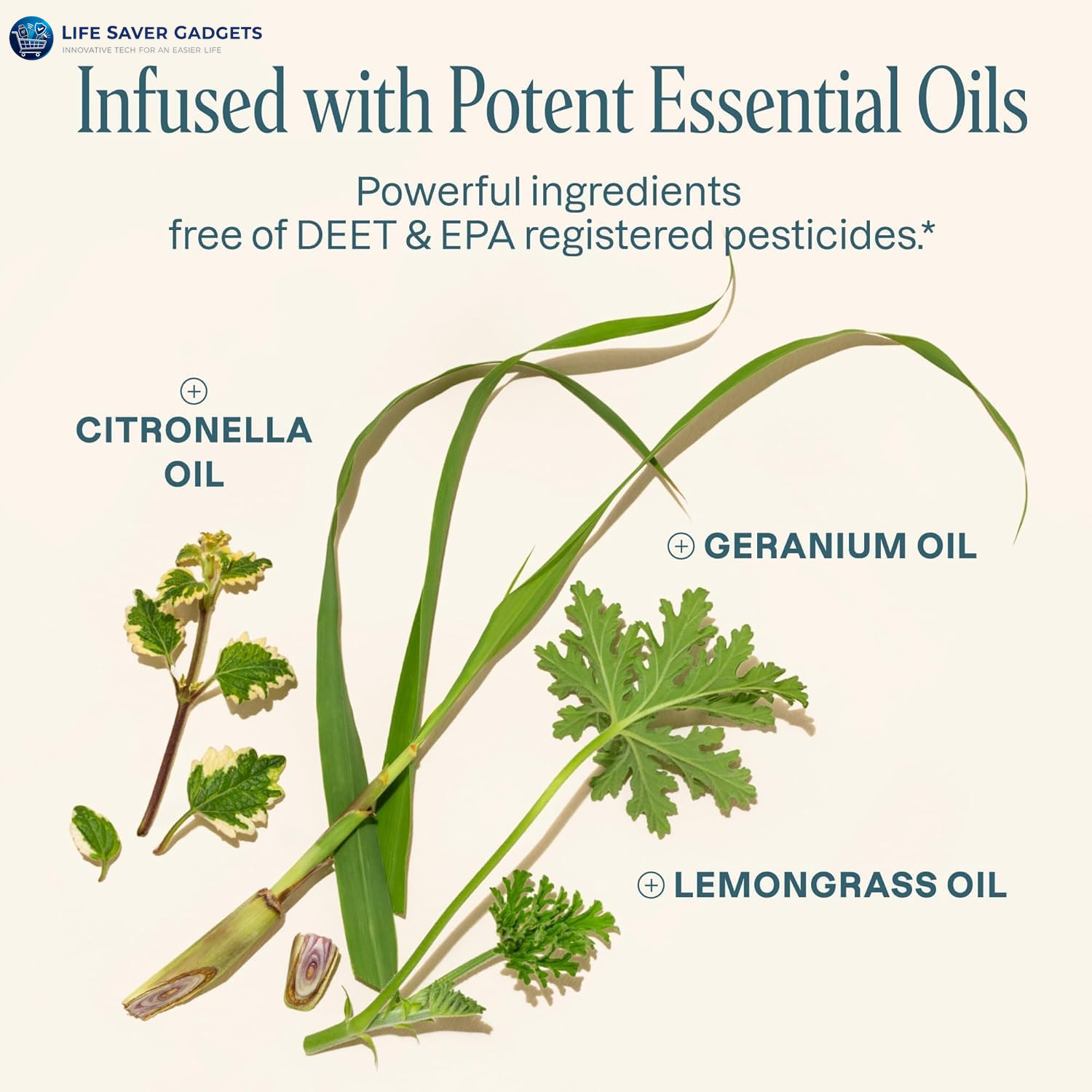 - DEET-Free & Powered By Essential Oils – Active ingredients derived from plants