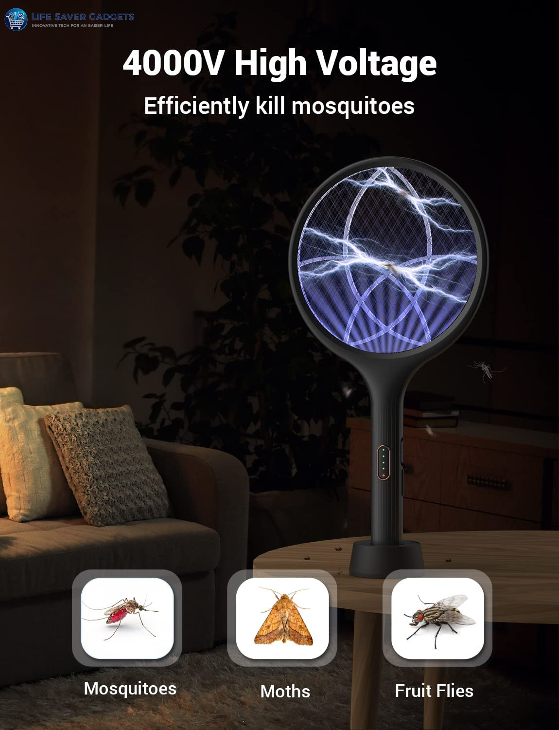 - ( Powerful 4000V Volatge ) YISSVIC fly swatter electric efficiently catches everything that will drive you crazy...fruit flies, gnats, flies, moths, anything that is attracted to light