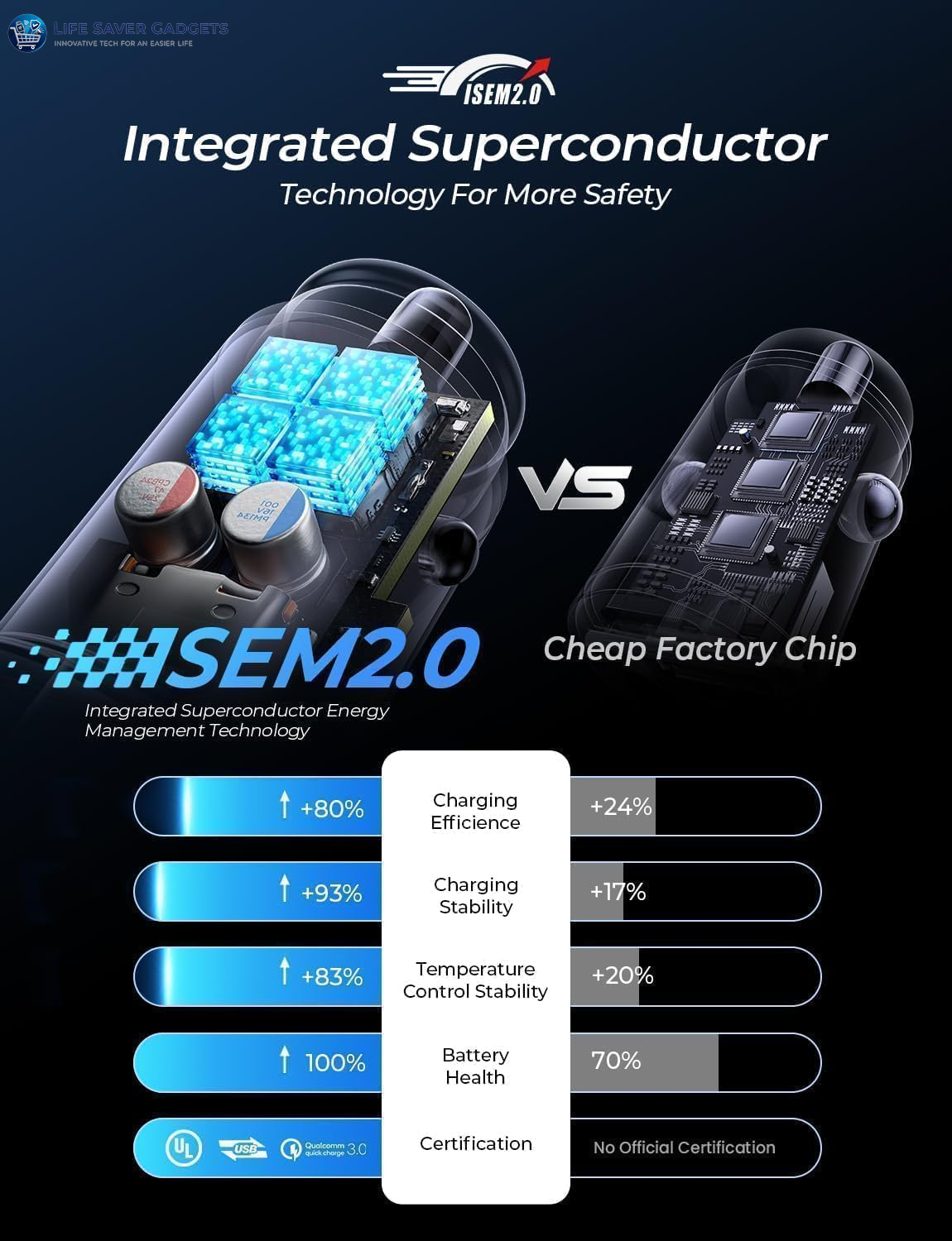 • π”ππˆππ“π„π‘π‘π”ππ“π„πƒ 𝐅𝐀𝐒𝐓 π‚π‡π€π‘π†πˆππ† π’πˆπŒπ”π‹π“π€ππ„πŽπ”π’π‹π˜ π…πŽπ‘ 𝟐 πƒπ„π•πˆπ‚π„π’: Whether you use 12v usb charger 45 watt ports or a combination of Watt 45 USB-C and Watt 22.5W USB-A ports, enjoy fast and efficient charging with a maximum output of Watt 67.5. cigarette lighter usb charger Intergrated superconductor tech for dual channel fast charging without spltting power.