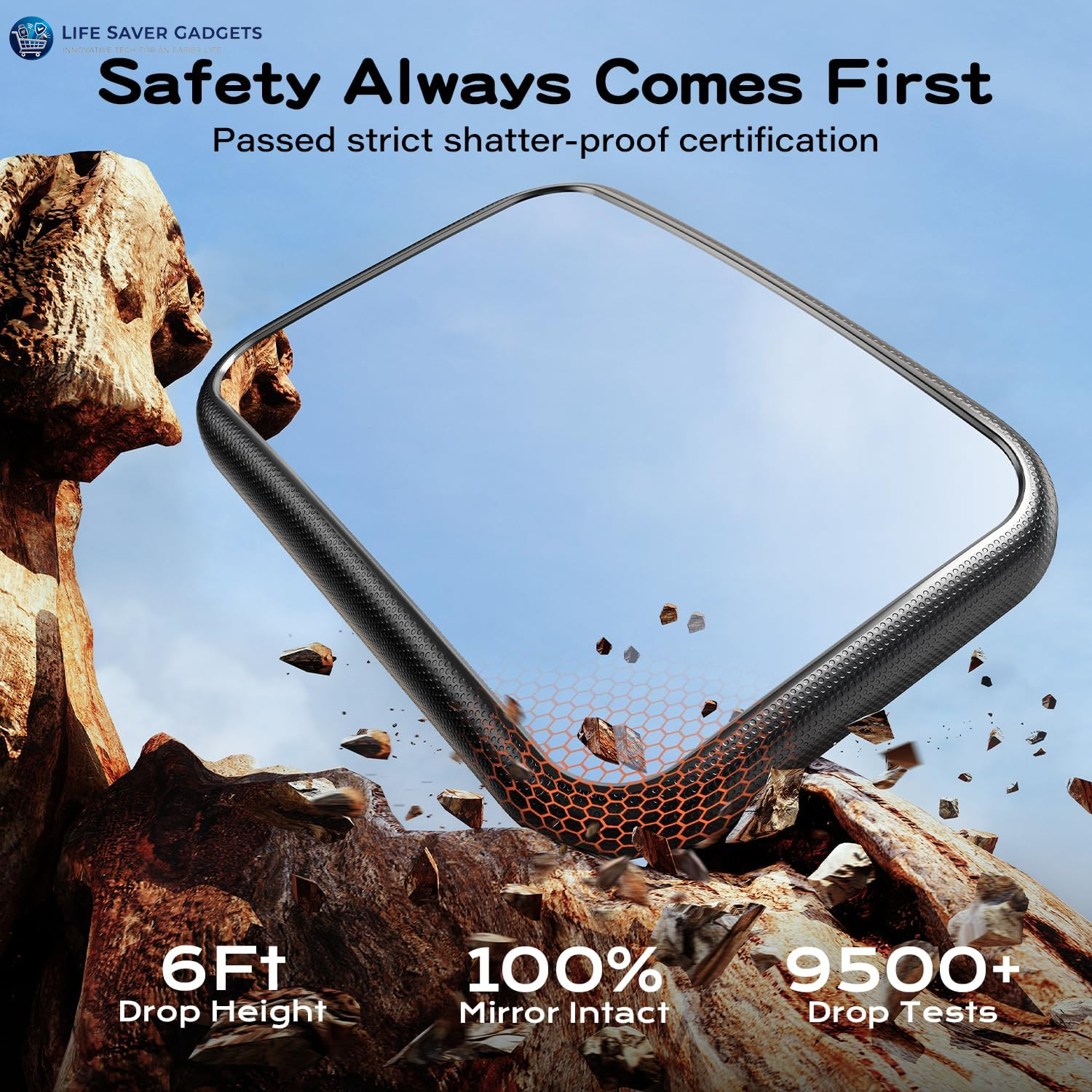 - Crystal Clear View for Safety: This baby girl boy essentials car seat mirror for baby rear-facing is made of an XL high-definition convex mirror material. And we use nano-coating and anti-explosion coating on the front and back of the mirror to make this newborn essential must have car mirror for baby high-definition and shatterproof. Even if it breaks by a severe impact, the pieces will be stuck and stay in place, and will not fall off and cause damage