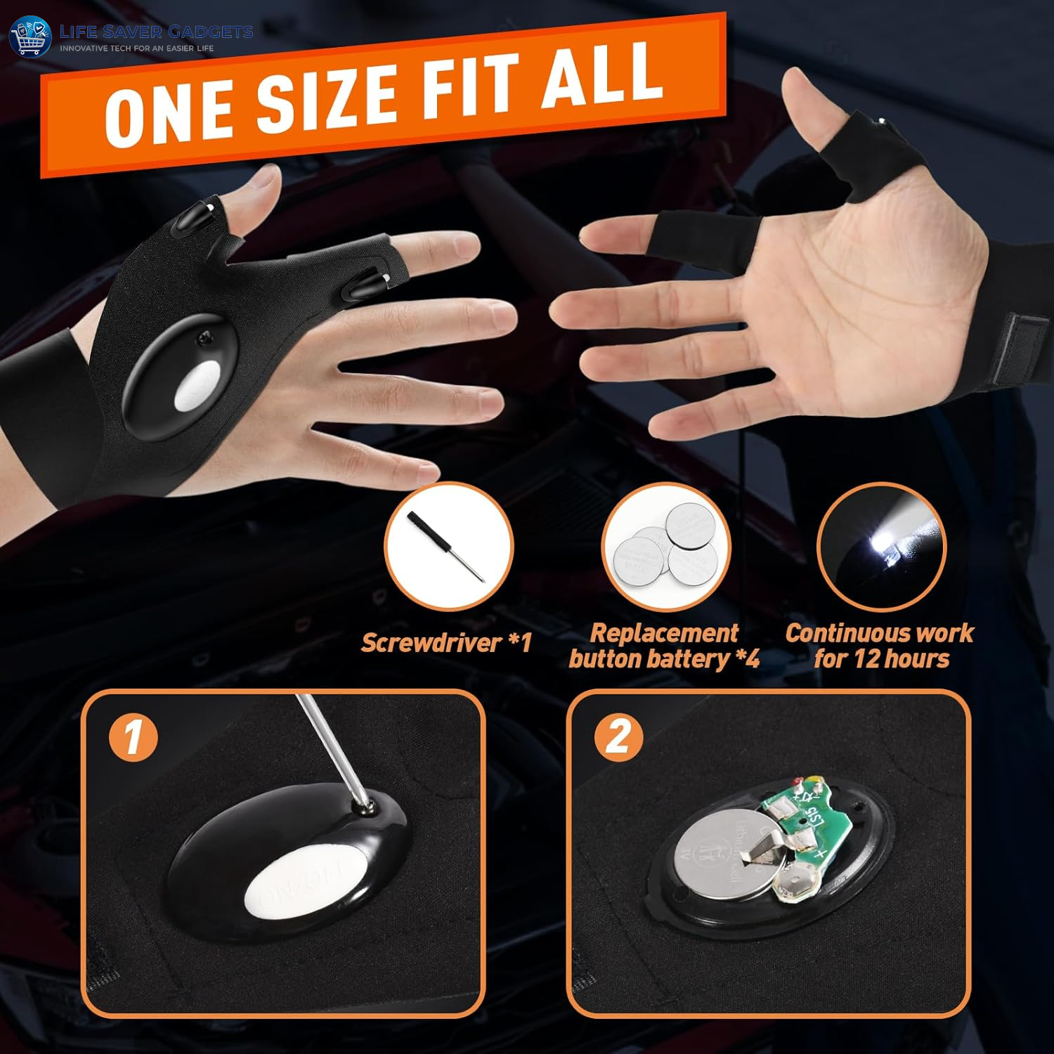Precision Task Lighting: Each glove is equipped with two ultra-bright LED beads, providing 30 hours of continuous, focused illumination for intricate work.