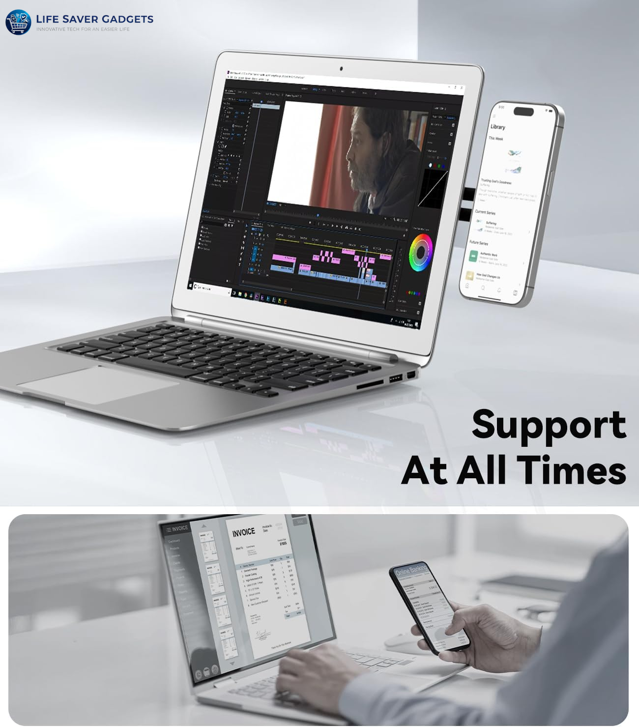 • 【New Upgraded Laptop Phone Stand】An innovative product designed specifically for laptops, the magnetic design securely attaches your phone to any desktop monitor, laptop, MacBook or iPad, while featuring an adjustable angle, allowing you to easily take calls or check your text messages and other activities while you work, helping users to achieve a dual-screen display, thus improving office productivity.