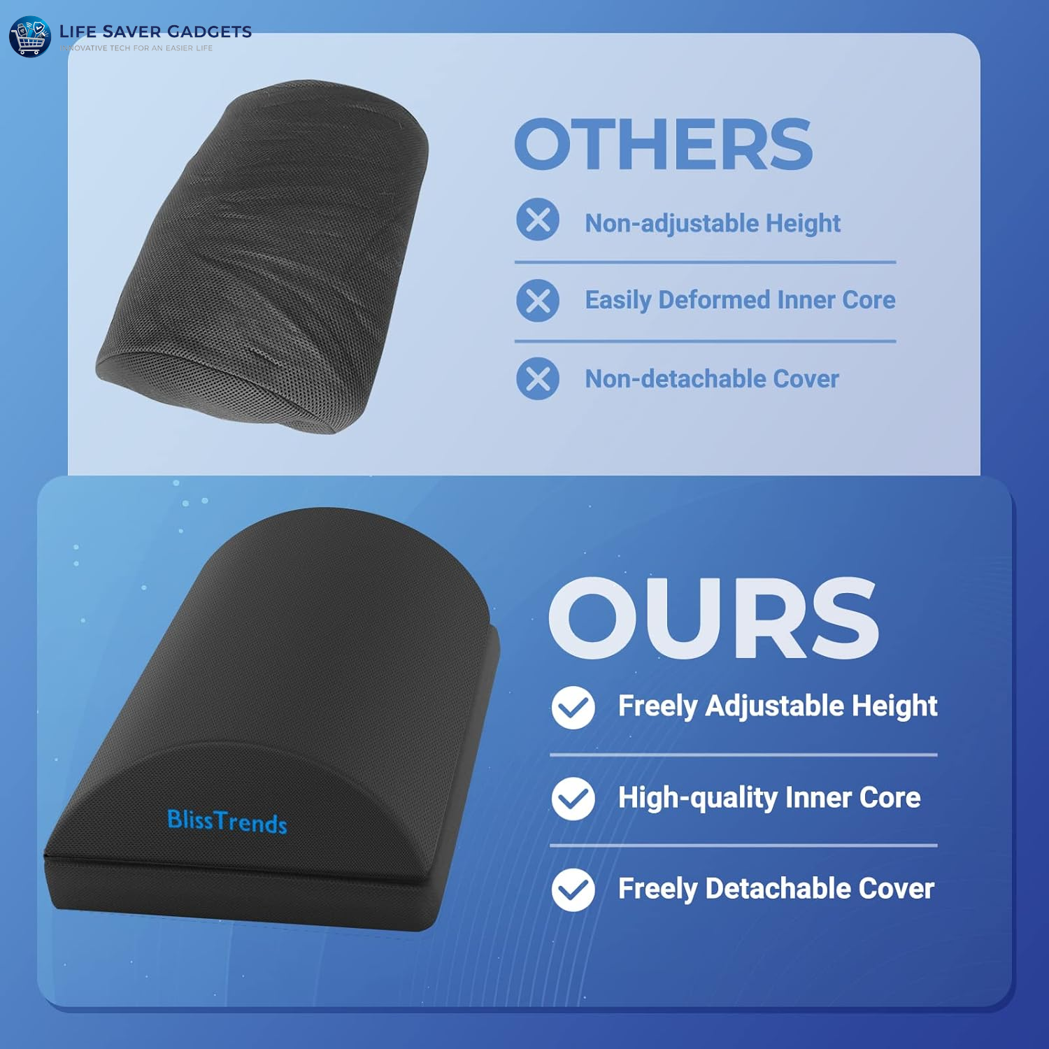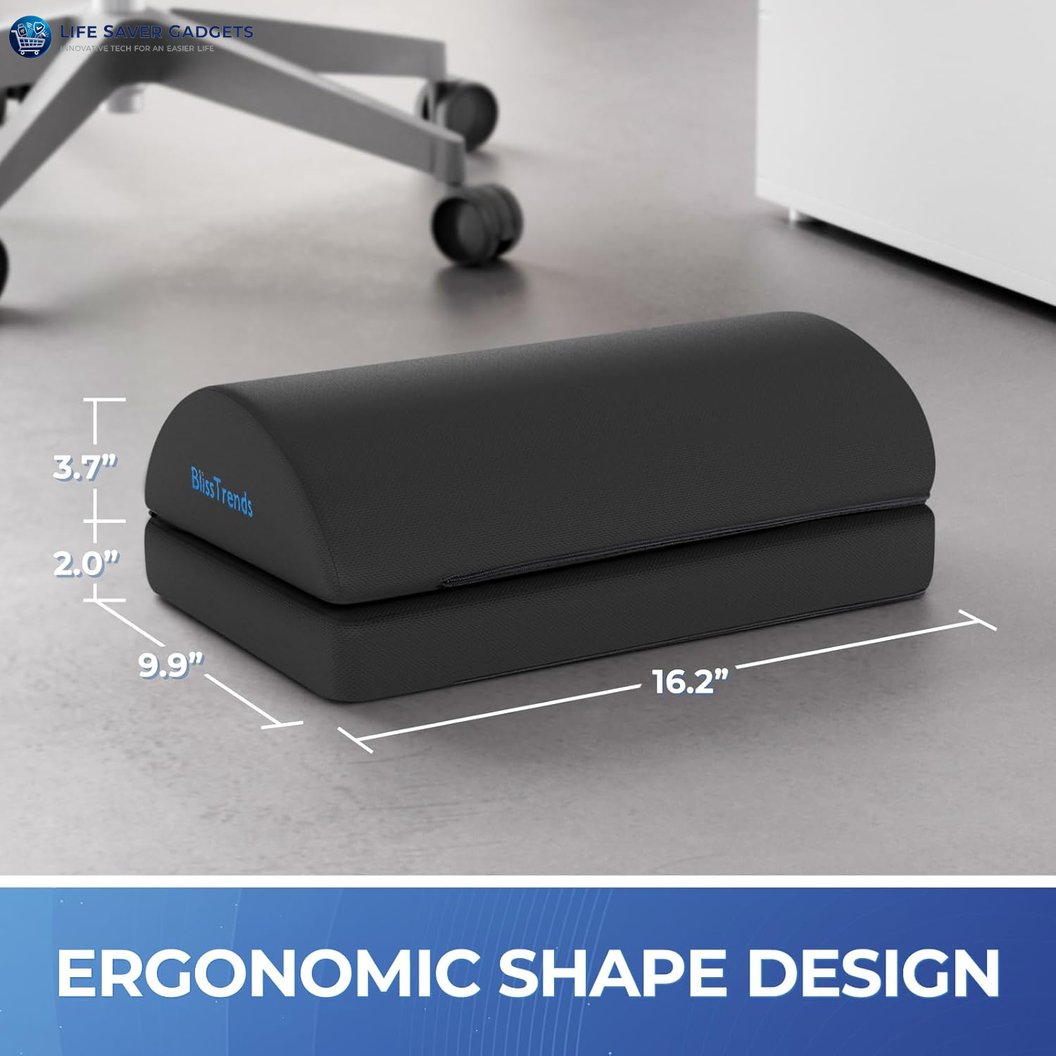 - [Comfortable Experience]The BlissTrends foot rest has two layers: the lower layer measures 16.2"*9.9"*2.0", and the upper layer is 3.7" thick. The foot stool is ergonomically designed with sufficient height and curvature to better relieve the pressure on your limbs and discomfort when sitting for long periods of time.
