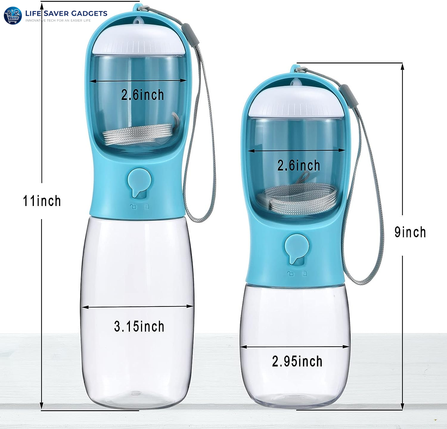 • Optional Colors & Water Capacity: There are multiple fashion colors and different capacity of water-10oz(300ml) and 19oz(550ml). 10oz water is enough for puppies and small pets walking, 19oz is needed for large dogs travelling and hiking.